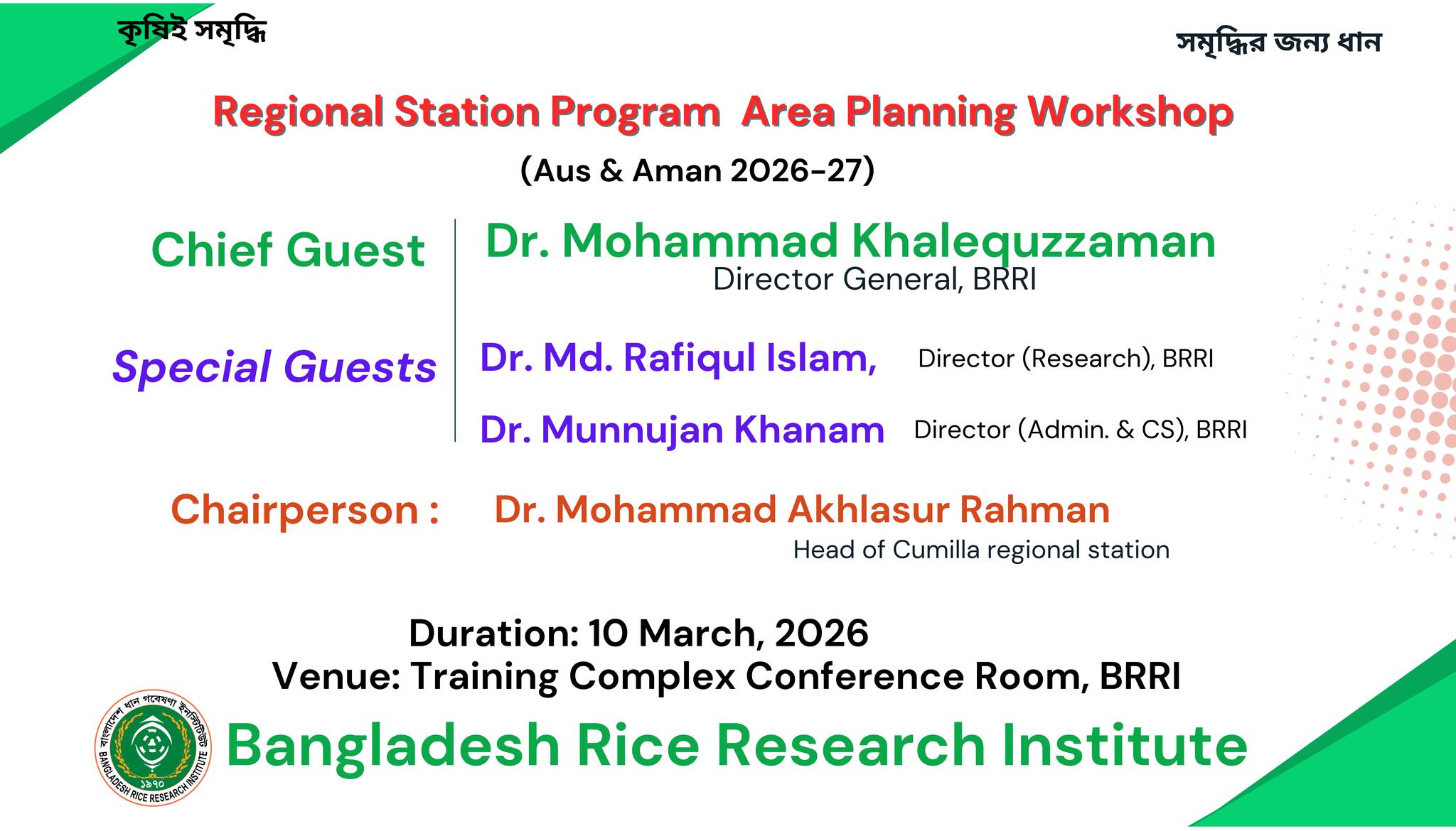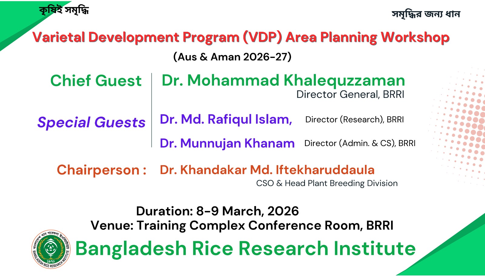 বাংলাদেশ ধান গবেষণা ইনস্টিটিউট (ব্রি) এর নব যোগদানকৃত ৯ম ও তদুর্ধ্ব গ্রেডের বিজ্ঞানী/কর্মকর্তাদের ইনডাকশন ট্রেনিং (পরিচিতিমূলক প্রশিক্ষণ) (26-02-26)