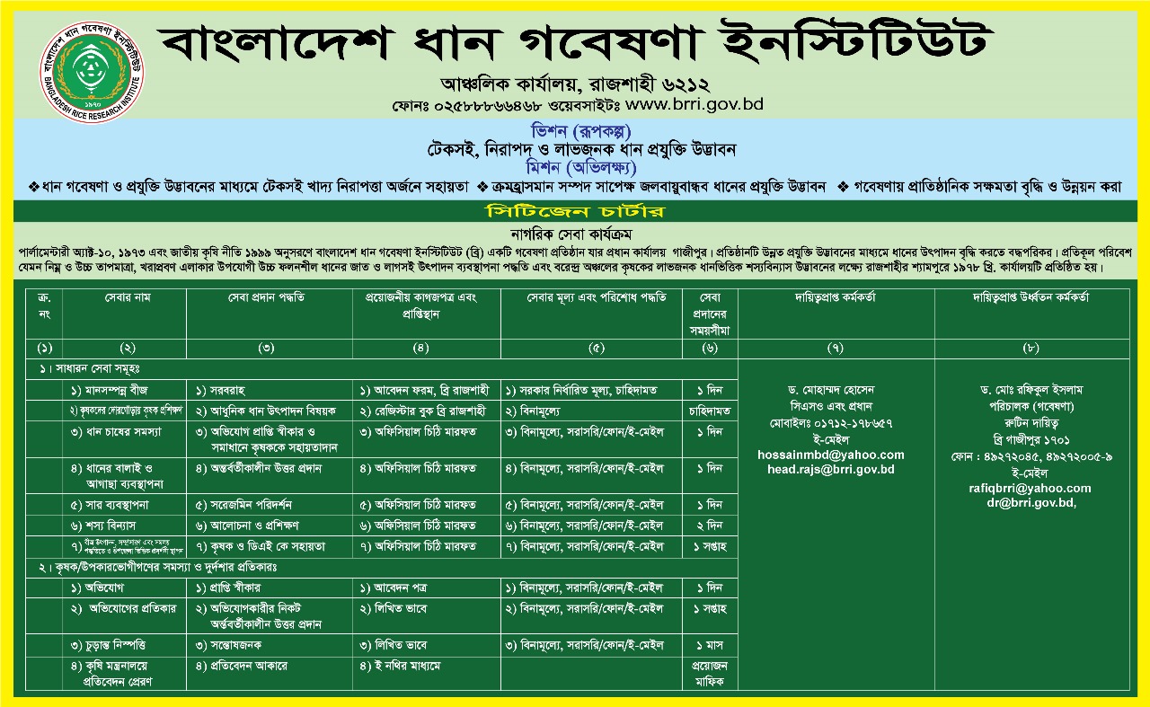 বাংলাদেশের উত্তর-পশ্চিম অঞ্চলের রাজশাহী শহরের পূর্ব প্রান্তে শ্যামপুর নামক স্থানে অবস্থিত ব্রি আঞ্চলিক কার্যালয়, রাজশাহী ১৯৭৮ সালে প্রতিষ্ঠা করা হয়। দেশের উঁচু গাঙ্গেয় নদী প্লাবনভূমি কৃষি পরিবেশ অঞ্চলে (কৃষি পরিবেশ অঞ্চল-১১) প্রতিষ্ঠিত এই আঞ্চলিক কার্যালয়ের প্রধান উদ্দেশ্য ও লক্ষ্য হচ্ছে প্রতিকূল পরিবেশ যেমন নীচু তাপমাত্রা ও উঁচু, খরাপ্রবণ (গড় বার্ষিক বৃষ্টিপাত ১৪০০ মিলিমিটার) এলাকার উপযোগী উচ্চ ফলনশীল ধানের জাত ও লাগসই উৎপাদন ব্যবস্থাপনা পদ্ধতি উদ্ভাবন। এছাড়া অনূর্বর (জৈব পদার্থ মাত্র ০.৭%), ক্ষারীয় মৃত্তিকা সম্বলিত বরেন্দ্র অঞ্চলের কৃষকদের জন্য আর্থিকভাবে লাভজনক ধানভিত্তিক শস্য বিন্যাস উদ্ভাবন করাও এই কার্যালয়ের অন্যতম প্রধান দায়িত্ব। বাংলাদেশ ধান গবেষণা ইনস্টিটিউটের এই আঞ্চলিক কার্যালয়টি ৭ জন বিজ্ঞানী এবং ১৮ জন সাপোর্ট সার্ভিস স্টাফ দ্বারা পরিচালিত হয়।
