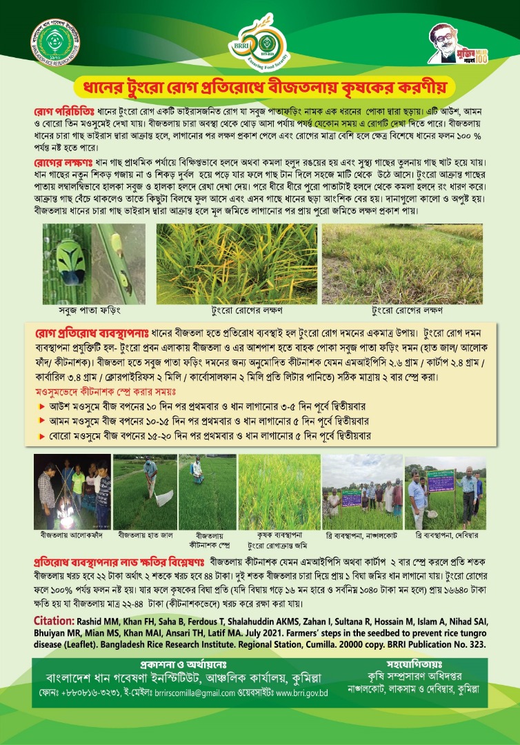| ০৯. | ধানের টুংরো রোগ প্রতিরোধে বীজতলায় কৃষকের করণীয় | অক্টোবর ২০২৩ | ডাউনলোড |