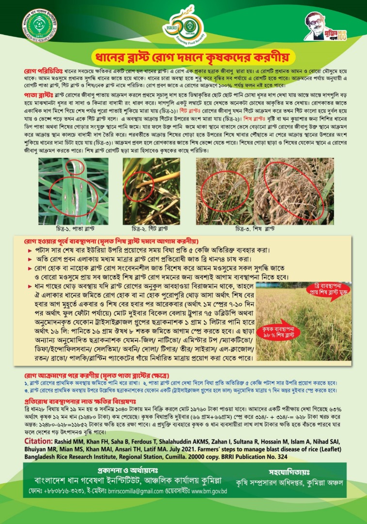 | ০৭. | ধানের ব্লাস্ট রোগ দমনে কৃষকদের করণীয় | জুলাই ২০২১ | ডাউনলোড |