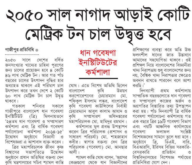 | ব্রি’র বার্ষিক গবেষণা পর্যালোচনা কর্মশালা ২০১৫-১৬ শুরু (যায়যায়দিন ,দ্য ডেইলি সান- ২৭ জানুয়ারী, ২০১৭) |