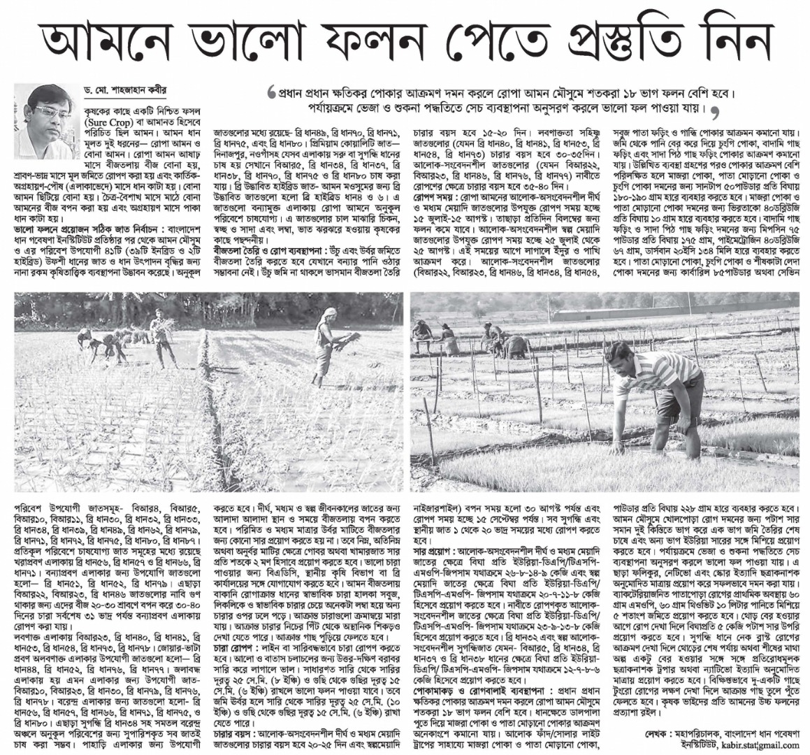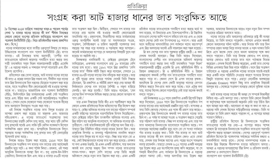 | ধানের যত উদ্ভাবন (প্রথম আলো-৬ নভেম্বর, ২০১৭) |
