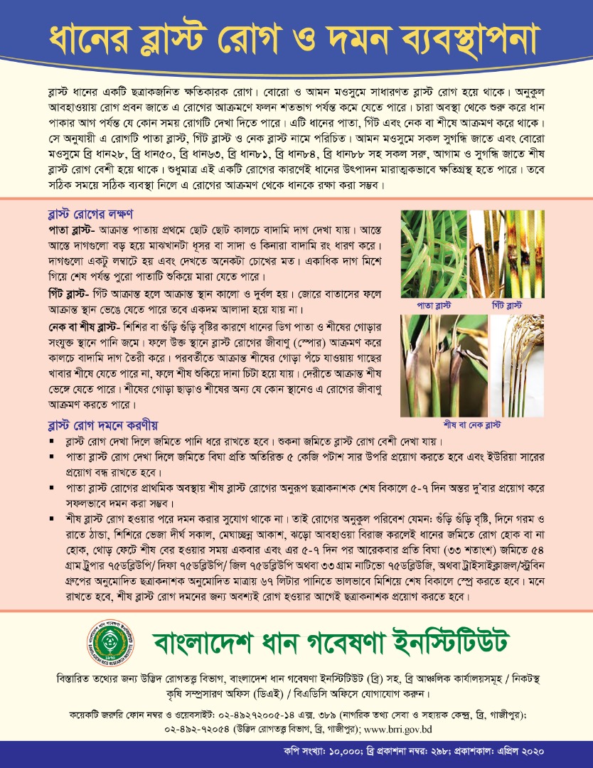 | ০৬. | ধানের ব্লাস্ট রোগ ও দমন ব্যবস্থাপনা | এপ্রিল ২০২০ | ডাউনলোড |