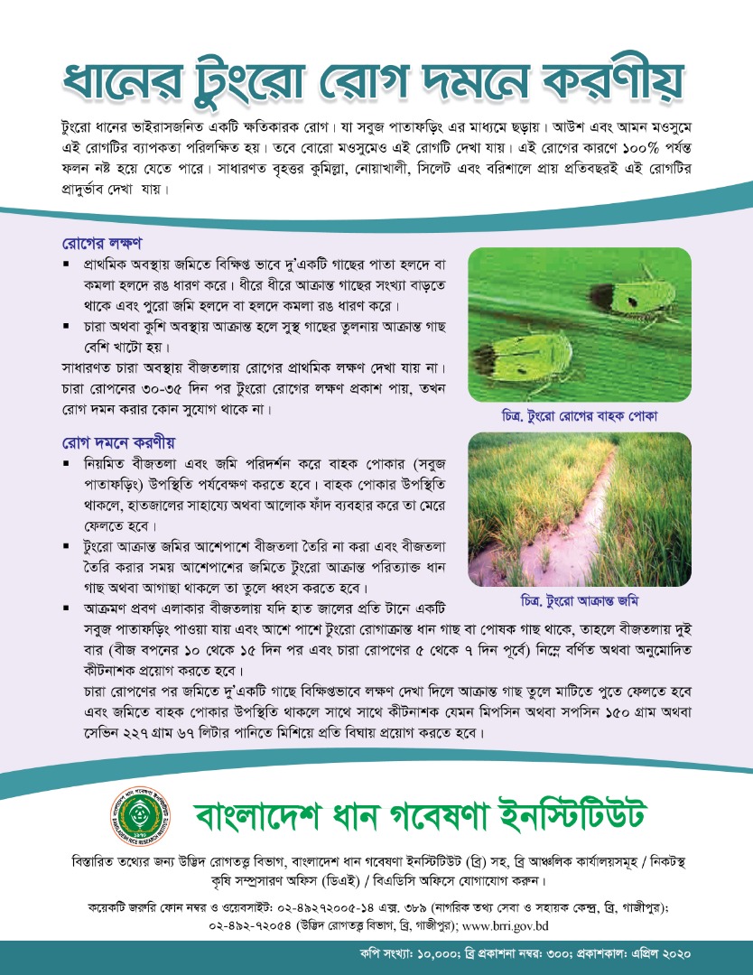| ০৭. | ধানের টুংরো রোগ দমনে করণীয় | এপ্রিল ২০২০ | ডাউনলোড |