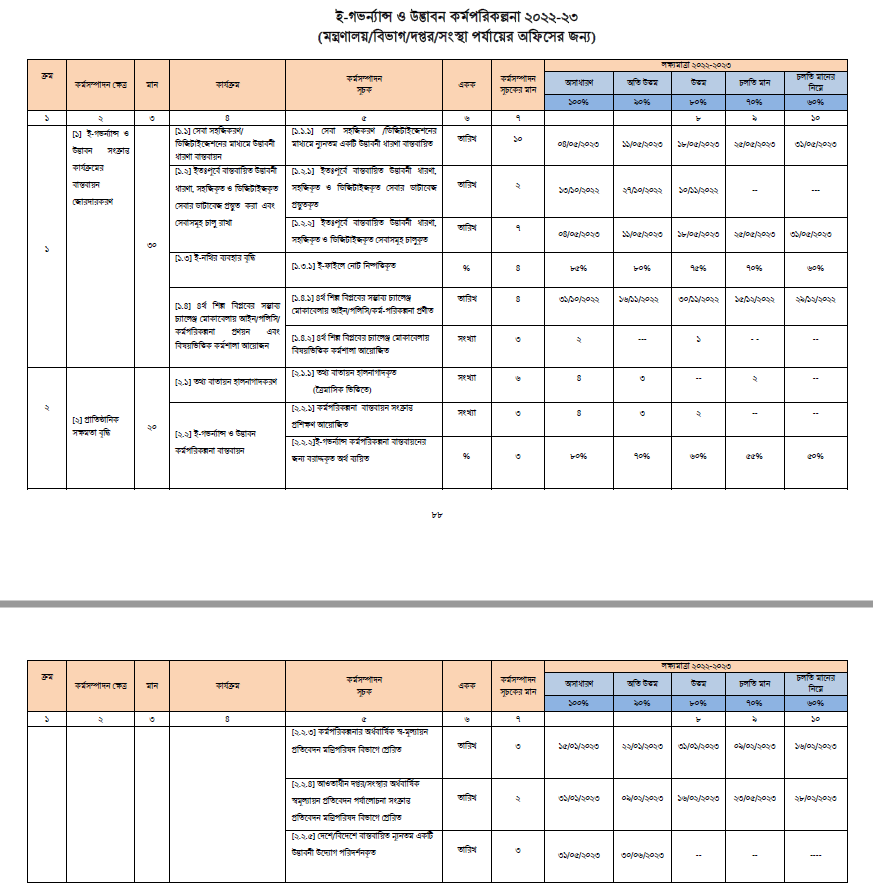 | ই-গভর্ন্যান্স ও উদ্ভাবন কর্মপরিকল্পনা ২০২২-২৩ | ||
